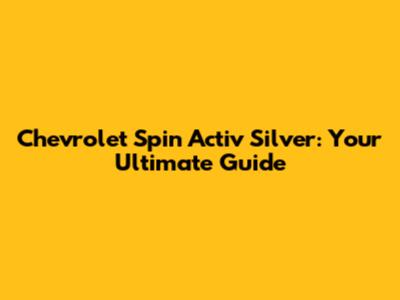 Chevrolet Spin Activ Silver: Your Ultimate Guide