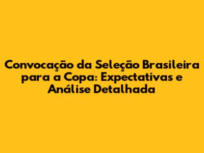 Convocação Da Seleção Brasileira Para A Copa: Expectativas E Análise
