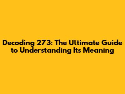 Decoding 273: The Ultimate Guide To Understanding Its Meaning