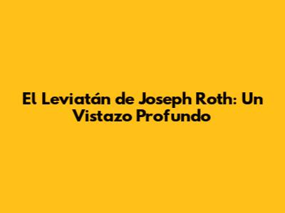 El Leviatán De Joseph Roth: Un Vistazo Profundo