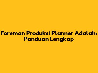 Apa Itu Foreman Produksi Planner?