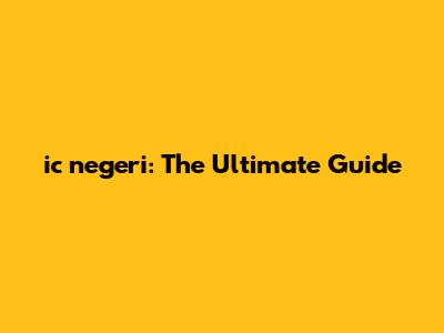 Ic Negeri: The Ultimate Guide