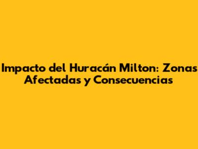 Impacto Del Huracán Milton: Zonas Afectadas Y Consecuencias