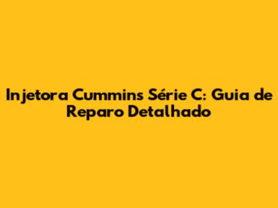 Injetora Cummins Série C: Guia De Reparo Detalhado