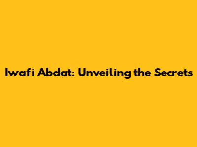 Iwafi Abdat: Unveiling The Secrets