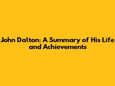 John Dalton: A Summary Of His Life And Achievements