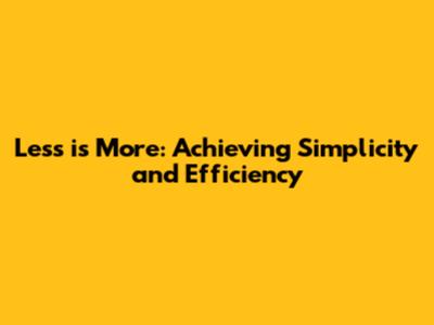 Less Is More: Achieving Simplicity And Efficiency