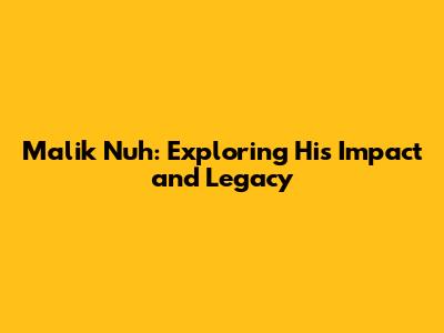 Malik Nuh: Exploring His Impact And Legacy