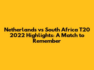 Hey cricket fanatics! Remember the nail-biting Netherlands vs South Africa T20 2022 match? It was a rollercoaster of emotions, showcasing some seriously impressive cricket. Let's dive deep into the highlights, dissect the key moments, and relive the excitement. This match wasn't just any game; it was a testament to the unpredictable nature of T20 cricket, filled with stunning performances and unexpected turns. Get ready to be transported back to that electrifying atmosphere as we break down what made this clash so memorable. We'll explore the standout performances, the strategic masterstrokes, and the moments that had everyone on the edge of their seats. Whether you're a seasoned cricket aficionado or a casual fan, there's something in this recap for you. Let's get started, shall we?