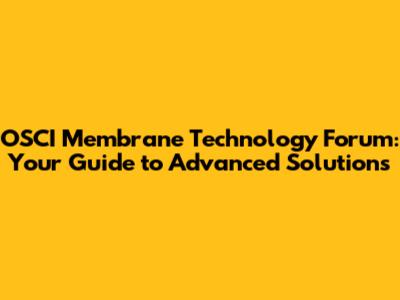 OSCI Membrane Tech Forum: Your Guide To Advanced Solutions