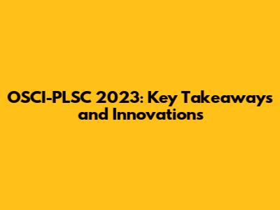 OSCI-PLSC 2023: Key Takeaways And Innovations