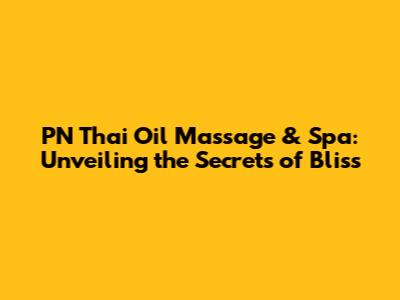 PN Thai Oil Massage & Spa: Your Ultimate Relaxation Destination