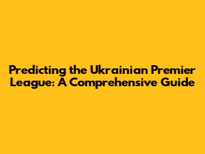 Predicting The Ukrainian Premier League: A Comprehensive Guide