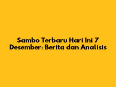Sambo Terbaru Hari Ini 7 Desember: Berita Dan Analisis