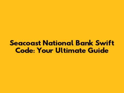 Seacoast National Bank Swift Code: A Comprehensive Guide