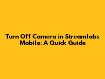 Step-by-Step Guide to Turning Off Your Camera in Streamlabs Mobile