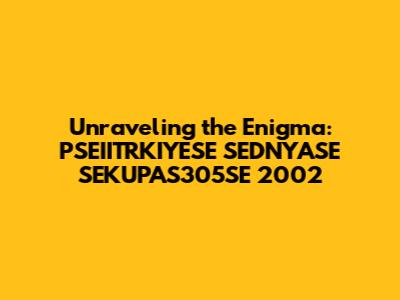 Unraveling The Mystery: PSEIITRKIYESE SEDNYASE SEKUPAS305SE 2002