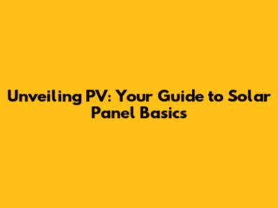 Unveiling PV: Your Guide To Solar Panel Basics
